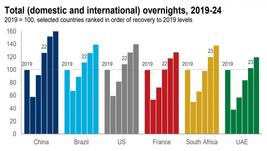 Guardando i dati elaborati da Tourism Economics possiamo concludere con una visione positiva in merito alla rispresa del turismo, i risultati già dal 2022 potrebbero superare i livelli del 2019, anche se la proporzione tra viaggi nazionali e internazionali non sarà più la stessa. I viaggi nazionali, in particolare quelli di tipo leisure, saranno quelli che per primi torneranno ai livelli del 2019, mentre più lenta sarà la ripresa di quelli internazionali e del business travel.